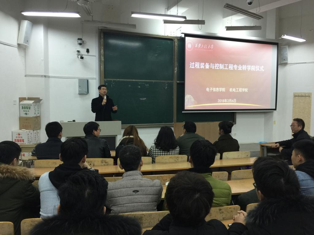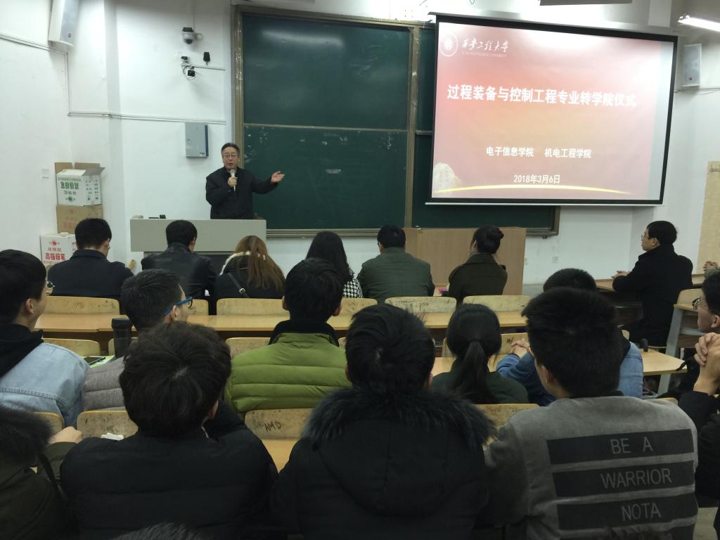 过程装备与控制工程专业转专业仪式在临潼校区教学楼B105举行,仪式由电信公司党委副书记杨建军主持。电信公司党委书记杨恩科阐述了公司学科专业调整的重要意义,对过程装备与控制工程专业员工的在校表现给予了充分肯定,希望过控专业的员工在新的公司里面继续秉承一贯的优良传统,做好人,做好事。机电公司党委书记王鸣媛对过程装备与控制工程专业的员工加入机电公司表示热烈欢迎,希望同学们尽快调整状态,适应新的环境,以饱满的精神状态投入到新学期的学习生活中。