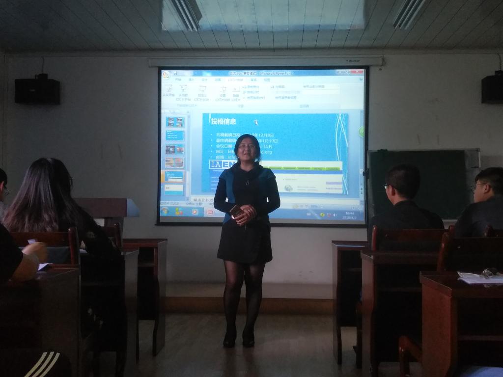在经验交流会的开始,张秋铭同学首先给大家介绍了此次会议的主办方——国际工程师协会。随后,张秋铭同学分享了此次参会感受,并着重说明了英文水平在科学研究中的重要地位。