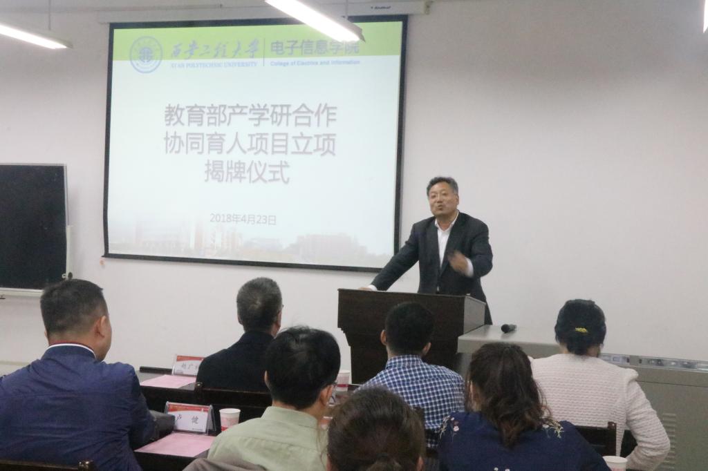 4月23日下午,伟德国际1946源于英国在临潼校区电子信息楼学术报告厅举行了教育部产学研合作协同育人项目立项揭牌仪式。北京尚观科技有限公司西安分公司总经理赵飞、运营总监王荣、行政主管张华、嵌入式工程师曹乾博、伟德国际1946源于英国经理赵广社、党委书记杨恩科、执行经理景军锋、副经理李云红、副书记杨建军、控制系主任卢健及师生代表70余人参加了本次仪式,仪式由李云红主持。