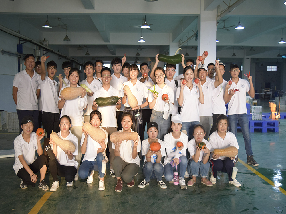 接着我们开始了园区内的参观学习,园区内有着各种的蔬菜水果棚,葫芦、葡萄、形状奇特“蛇豆”、半个人大的冬瓜。园区参观完毕后,负责人带领着实践队员们来到蔬菜包装仓库,工作人员们正在井然有序地分配装箱着刚刚采摘下来的蔬菜水果。