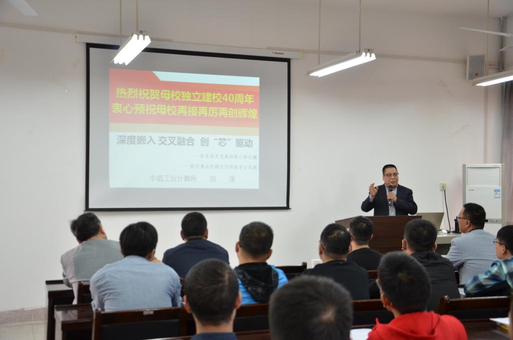2018年10月10日下午,应电信公司邀请,公司自动化专业84级员工、中航工业首席技术专家、中航工业计算所副总工程师田泽做客公司,作了题为“深度嵌入 交叉融合 创‘芯’驱动”的学术报告。该报告会是公司纪念独立建校40周年系列活动之一,副董事长朱永民、电信公司经理赵广社、电信公司执行经理景军峰参加了报告会,电信公司教师和研究生共100余人聆听并与主讲人作了学术互动。本次报告会由电信公司党委书记杨恩科主持。