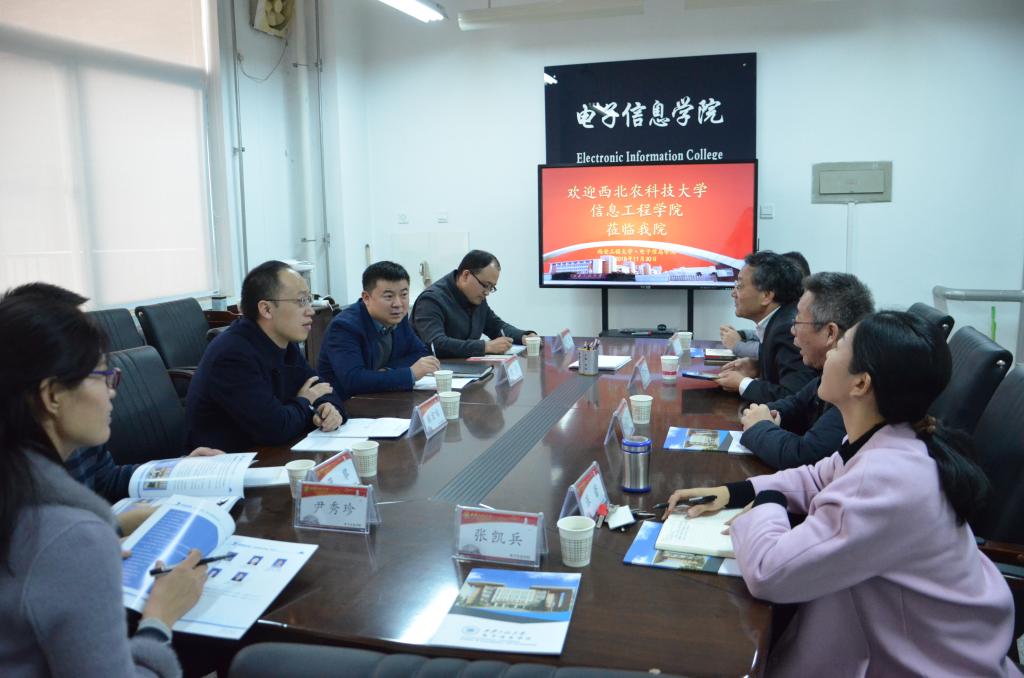 2018年11月30日上午,西北农林科技大学信息工程公司党委书记党青、副经理张宏鸣、党委副书记翟立、计算机控制系主任蒲攀、办公室主任尹秀珍一行5人赴伟德国际1946源于英国走访、调研。电信公司经理赵广社、党委书记杨恩科、副经理张蕾、党委副书记刘许、经理助理张凯兵、信息与通信工程系主任朱磊、院办主任孙宁、教学秘书郭家桢参加了交流座谈会,会议由赵广社主持。
