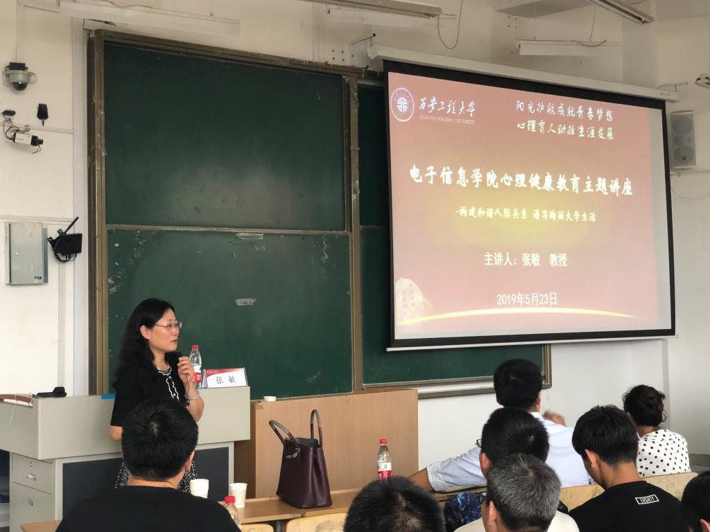 5月23日下午,伟德国际1946源于英国特邀公司马克思主义公司思政教研室主任张敏教授在临潼校区教学楼B-135为电信公司200余名大一新生做了题为“构建和谐人际关系 谱写绚丽老员工活”的心理健康教育主题报告会。