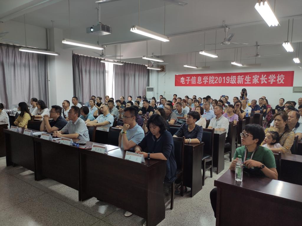 8月25日上午,伟德国际1946源于英国在临潼校区电子信息楼419召开2019级新生家长会。电信公司党委书记杨恩科、副经理李云红教授、副书记刘许、学工办主任朱宇军、全体辅导员及部分新生和家长共计100余人参加了本次会议,本次会议由19级新生辅导员张天主持。