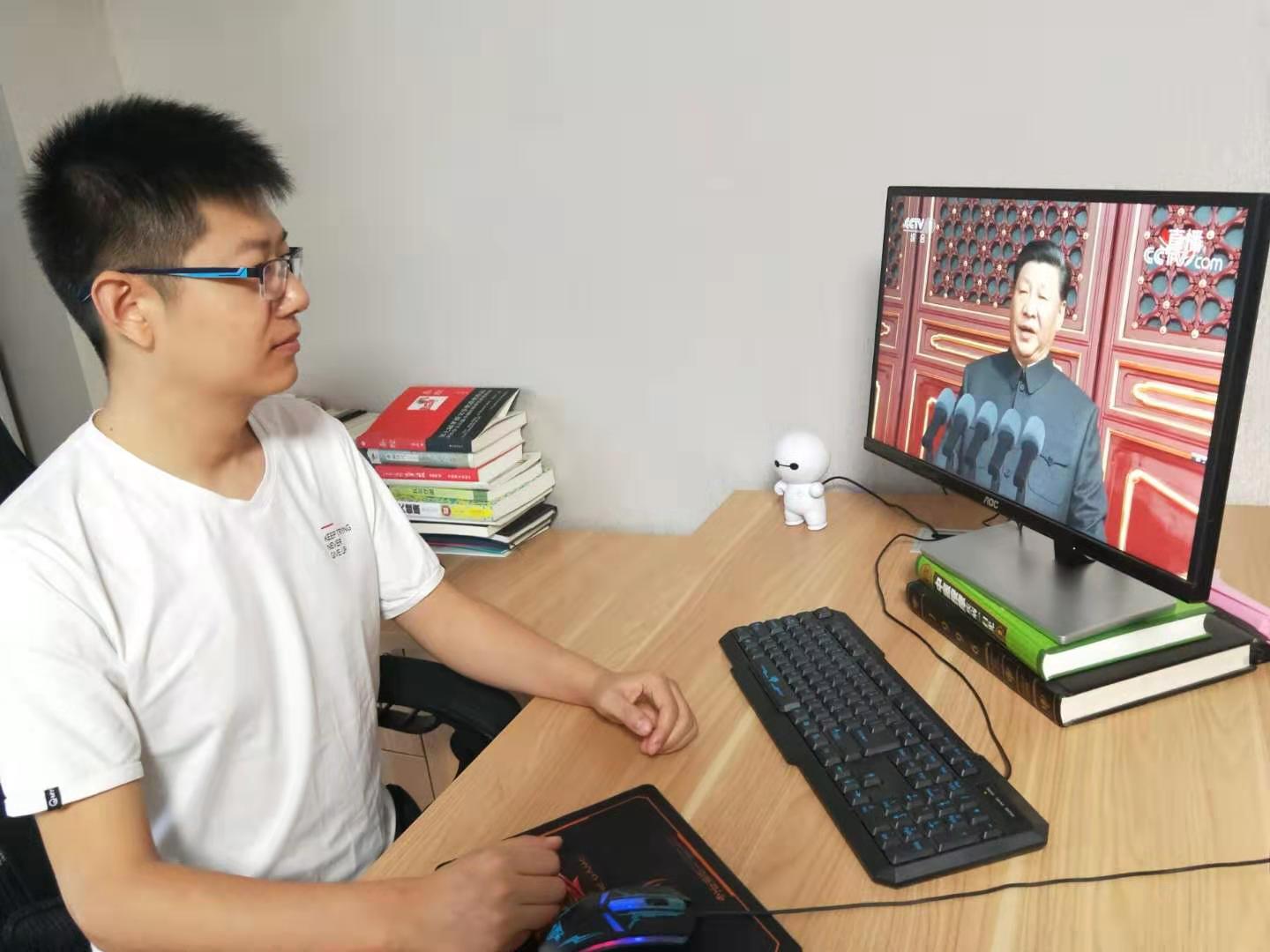 公司2017级电气工程研12班研究生赵钰说到,国庆节早上5点起床赶路,作为一名预备党员始终没有忘记今天是祖国的生日,拿出手机观看直播,心中满怀激动、充满了归属感。同时也洋溢着喜悦,为祖国的繁荣富强而感到高兴,为即将毕业的我能够加入建设祖国事业中有着些许期待。希望在全国人民的努力下,早日实现中国梦。