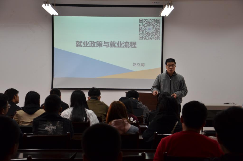 报告会上,赵立涛首先结合往届研究生就业情况,对当前就业形势进行了分析,深入地讲述了研究生在求职及签约所可能遇见的问题,并讲解了应对方法和解决思路。