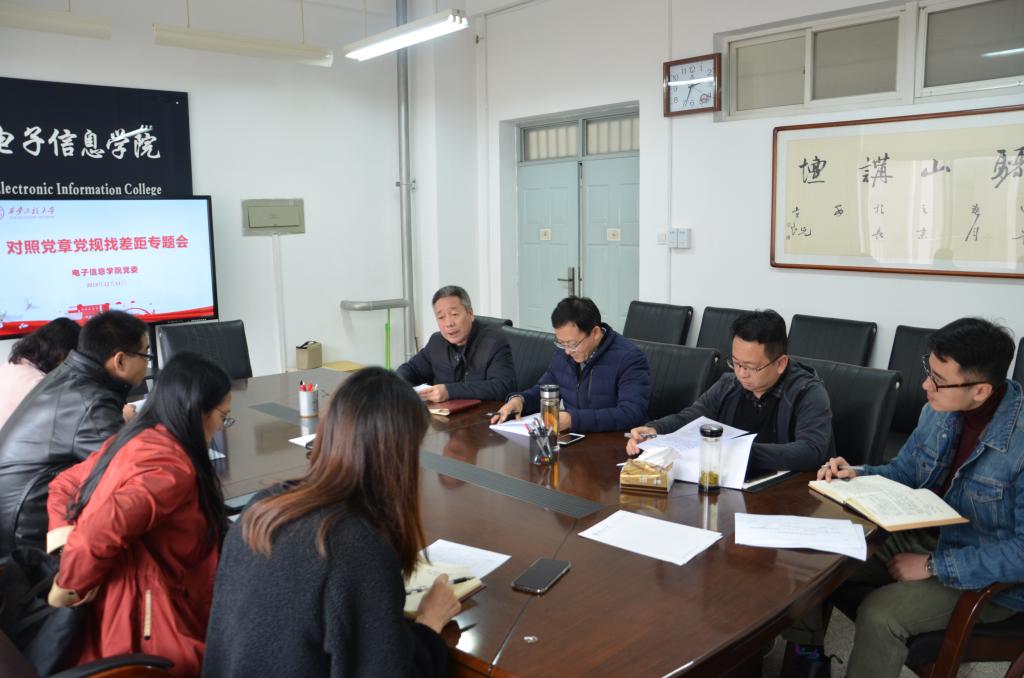 2019年11月11日下午2点,电子信息公司党委坚持以习近平新时代中国特色社会主义思想为指导,结合“不忘初心、牢记使命”主题教育,召开对照党章党规找差距专题会议。党委书记杨恩科主持会议,执行经理景军锋,副经理李云红,副经理张蕾,党委副书记刘许,公司办公室主任孙宁,员工工作办公室主任朱宇军出席会议。