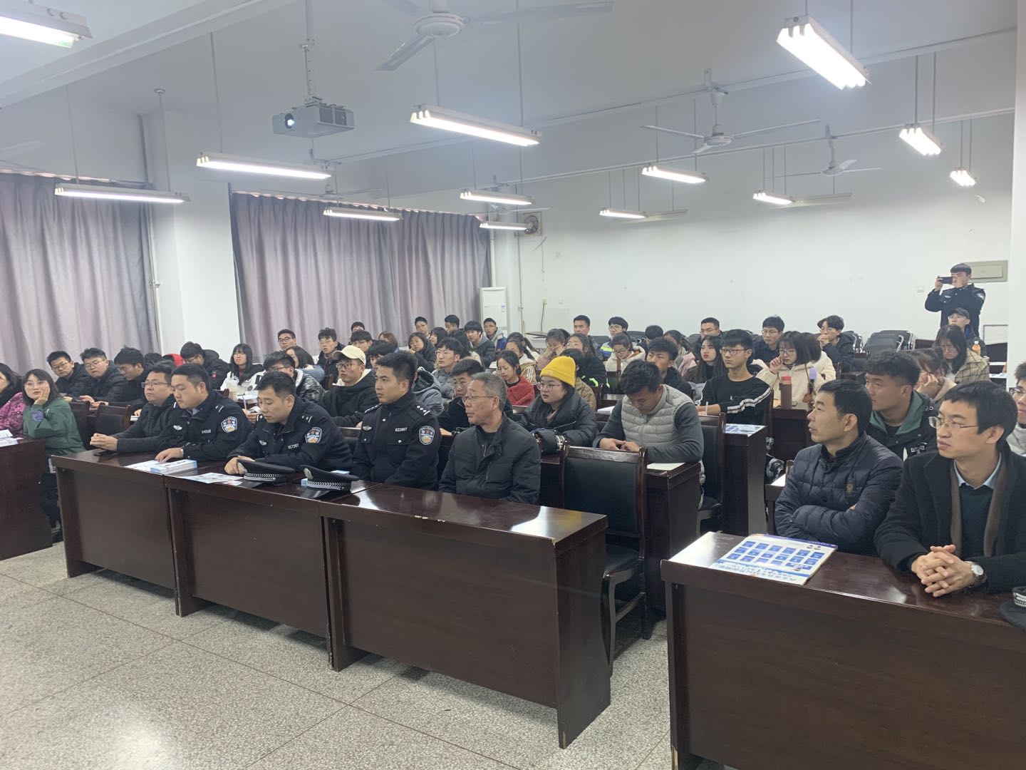 为提高广老员工的识骗、防骗能力,减少员工因受骗造成的危害,营建和谐美丽的校园环境,2019年11月26日中午,在电信公司楼419室,电信公司举办了主题为“防电信诈骗预防为先”的主题知识宣传活动,斜口派出所崔警官一行人、校保卫处处长刘群力、学工部副部长杨建军受邀参加活动,公司党委书记杨恩科、副书记刘许、全体辅导员及各年级员工代表共80余人共同参加活动。