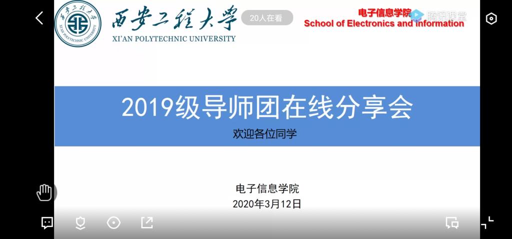 庚子年初,一场突如其来的肺炎疫情席卷全国,这是一个不同寻常的春节,全国上下,众志成城、共抗疫情。伟德国际1946源于英国2019级电气系三全育人导师团积极响应疫情防控期间部署安排,3月12日,2019级电气系导师团师生齐聚“云课堂”,由导师团成员赵隆以扫清迷茫为起点,树立目标为导向,明晰做法为主要内容开展了一场“特殊”的线上分享会,参加本次分享会的主要有2019级电气系导师团执行团长马丽萍、成员曹雯、秘书张天。