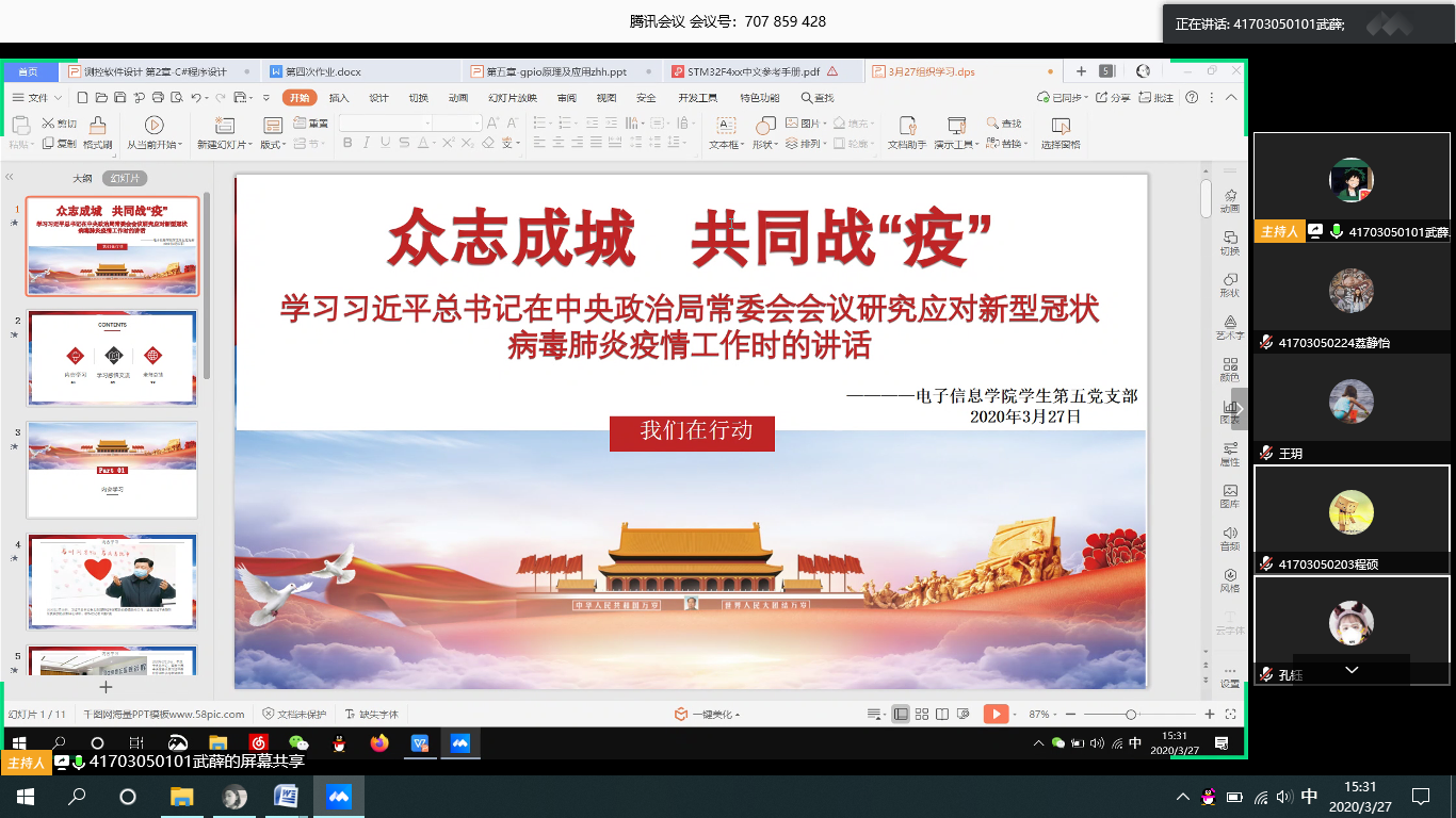 3月27日,伟德国际1946源于英国员工第五党支部开展“习近平在中央政治局常委会会议研究应对新型冠状病毒肺炎疫情工作时的讲话”专题学习会,会议由支部书记周梦宇主持,支部全体党员参加此次线上会议。