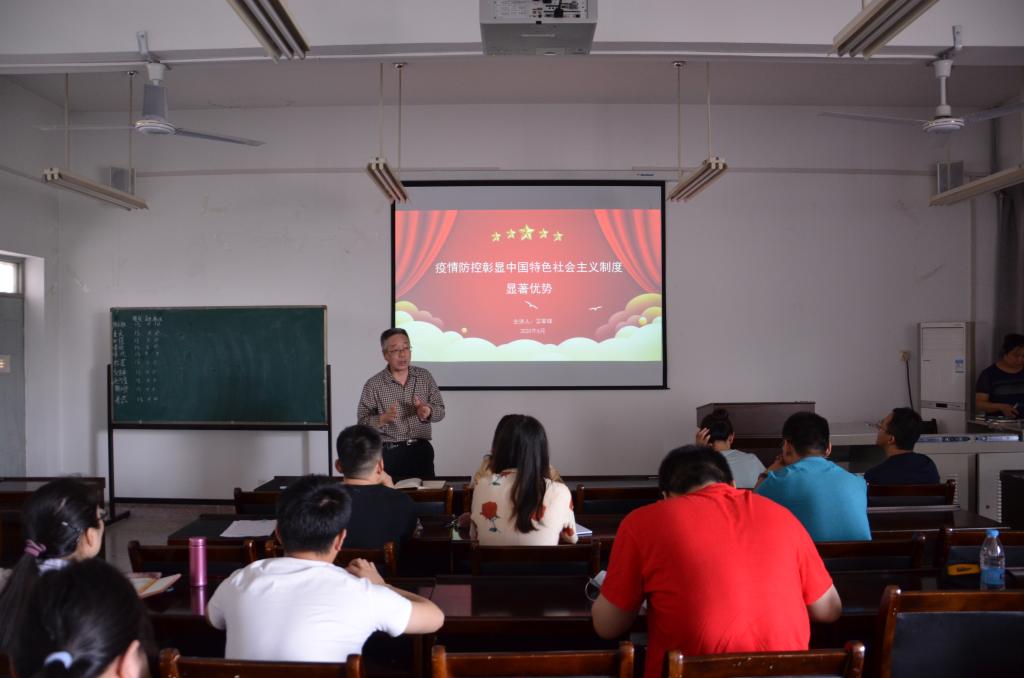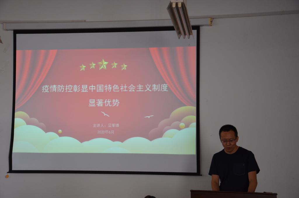 景军锋从“彰显坚持党的集中统一领导的制度优势 ”、“彰显密切联系群众的制度优势 ”、“彰显坚持全面依法治国的制度优势”、“彰显集中力量办大事的制度优势 ”四个方面深入阐述了在这次疫情防控中,中国特色社会主义制度体现的无与伦比的优越性,同时指出,我们要继续彰显并发挥中国特色社会主义制度优势,继续毫不放松抓紧抓实抓细各项防控工作,不取得最后的胜利绝不放松。