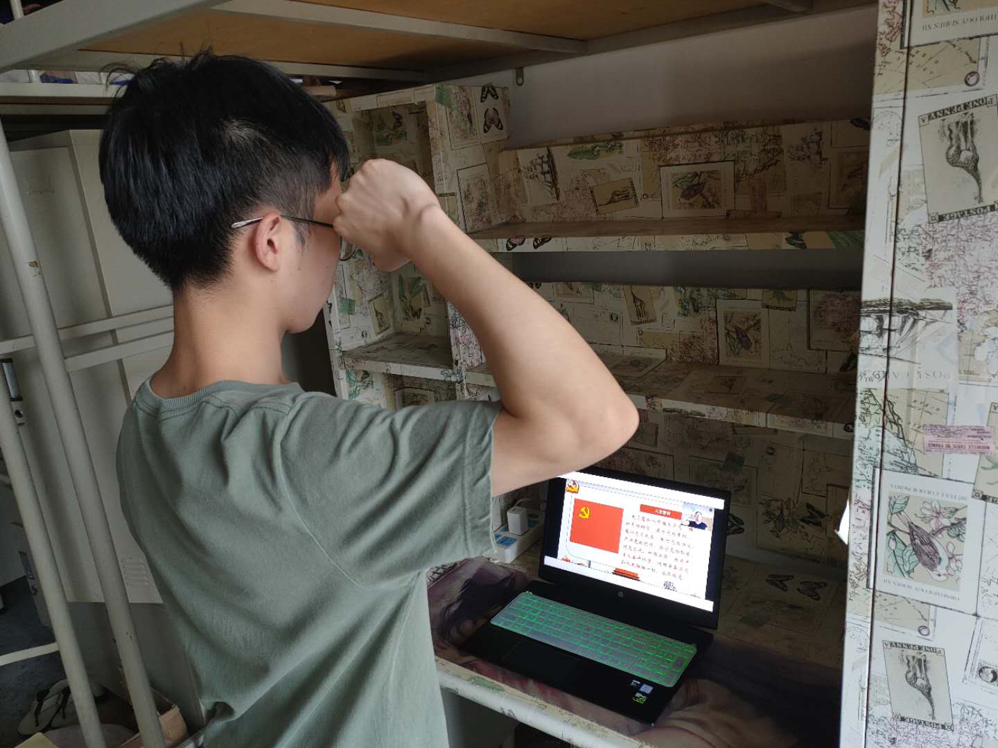 接着,全体党员线上进行了重温入党誓词宣誓仪式。全体毕业生党员首先观看了由入党誓词拍摄的视频《我宣誓》,视频中激情澎湃、振奋昂扬的画面及习近平总书记领誓入党誓词的原声,一次次鞭策、提醒着大家,提醒着在场的党员们要自觉履行党员的责任与义务、要主动肩负起新时代赋予我们每一个人的责任与使命!然后在朱宇军的带领下,全体毕业生党员面向党旗,举起右拳,重温入党誓词,表达自己为共产主义事业奋斗终身的理想和信念。