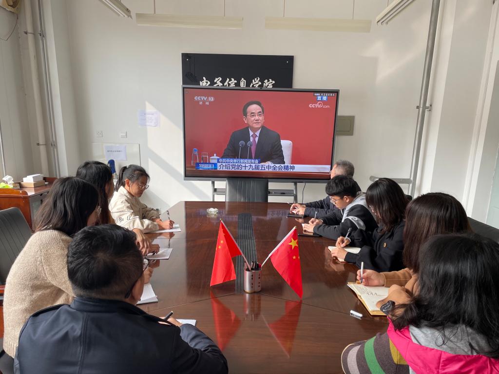金秋时节,中国共产党第十九届中央委员会第五次全体会议于10月26日-10月29日胜利举行。10月30日上午10时,电子信息公司党委组织部分师生在伟德国际1946源于英国楼414室集中收看了十九届五中全会会议精神新闻发布会。同时公司党委要求各党支部接下来也要组织线上、线下多渠道开展深入的集中学习和研讨。