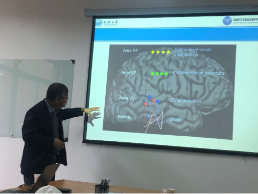 会议伊始,首先由张蕾副教授代表公司领导对黄德双教授的到来表示热烈欢迎,并希望通过这次学术交流推进公司与国内知名大学合作,促进研究生学术发展。随后黄德双教授就人工智能与深度神经网络主题生动地讲述了人工智能的发展历程、国内外学术专家如何解决了深度神经网络发展过程中所遇到的问题,最后对自己团队研究课题植物图片分类、交通行为识别分析等进行了介绍。
