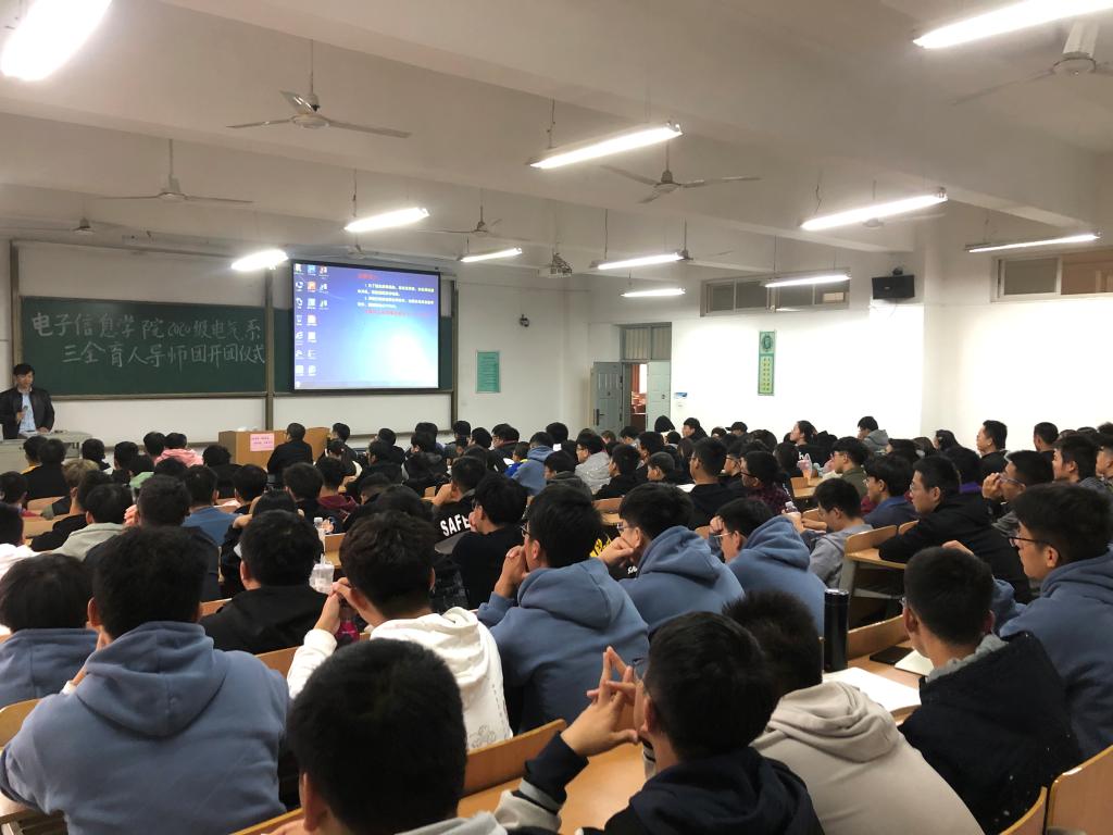 11月12日下午,2020级电气系三全育人导师团开团仪式暨工作部署会在教学楼A-228成功召开。电气系导师团执行团长邵文权、导师张博(1)、厉瑾、乌江、张博(2),辅导员王家钰,电气系2020级全体员工共150余人参会。本次会议由王家钰主持召开。
