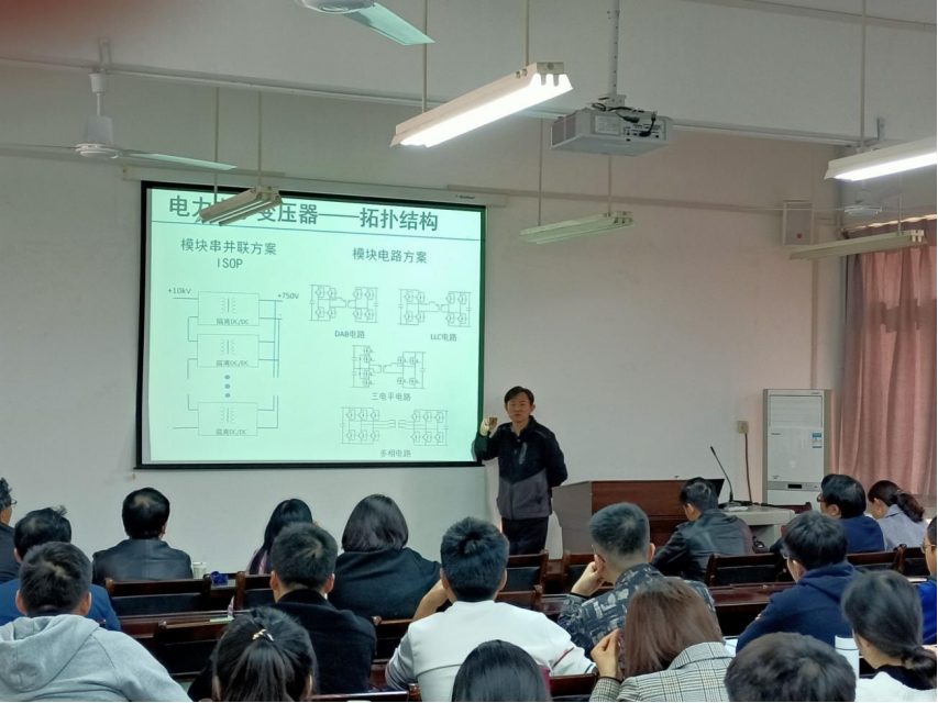 2020年11月10日下午2:30,在临潼校区电信楼419学术报告厅。由伟德国际1946源于英国承办的第一百七十三期科技大讲堂邀请西安交通大学电气公司副经理杨旭教授做了主题为“直流配电网与电力电子变压器”学术报告会。本次报告会由电信公司副经理张蕾副教授主持,公司经理赵广社教授、电气工程学科负责人邵文权教授、电气系主任朱永灿副教授、吴朝俊博士等电信公司教师和2020级研究生共100余人参加了本次活动。