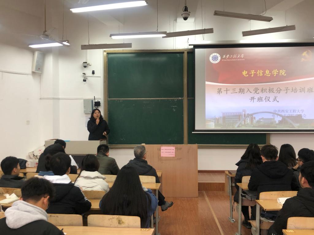 为学习贯彻习近平新时代中国特色社会主义思想和党的十九大精神,贯彻落实《中国共产党发展党员工作细则》,进一步提高入党积极分子的思想政治素质和政治理论水平,明确入党目的,端正入党动机,2020年12月1日中午12点,电子信息公司党委在B-135教室举行了公司第十三期入党积极分子培训班开班典礼。公司党委书记杨恩科、各党支部书记及86名入党积极分子参加了此次典礼,大会由公司学工办主任朱宇军主持。