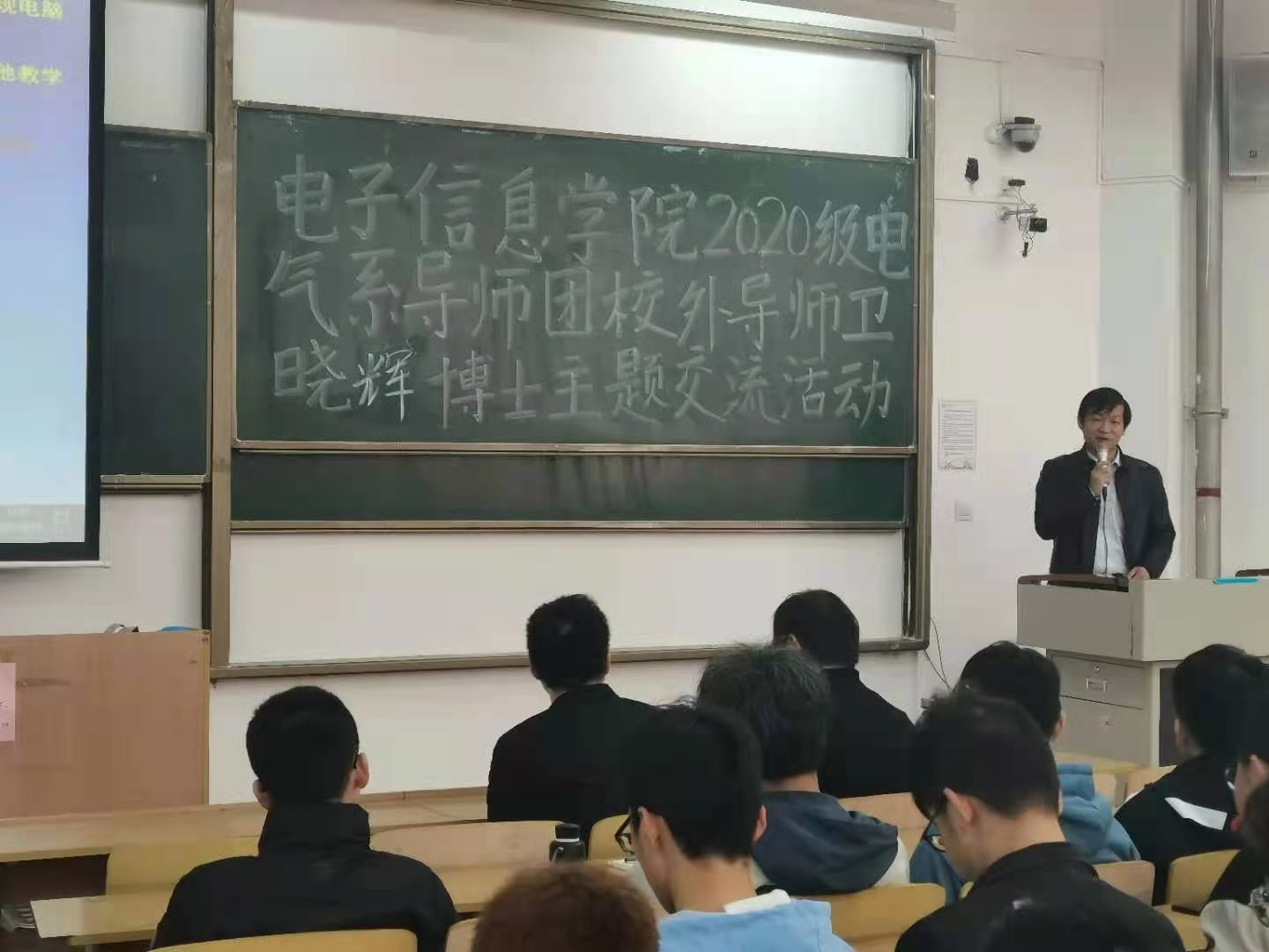 2021年3月14日上午,伟德国际1946源于英国2020级电气系“三全育人”导师团校外导师卫晓辉博士为电气专业2020级140余名员工做主题交流报告,执行团长邵文权、导师程远老师共同参加。