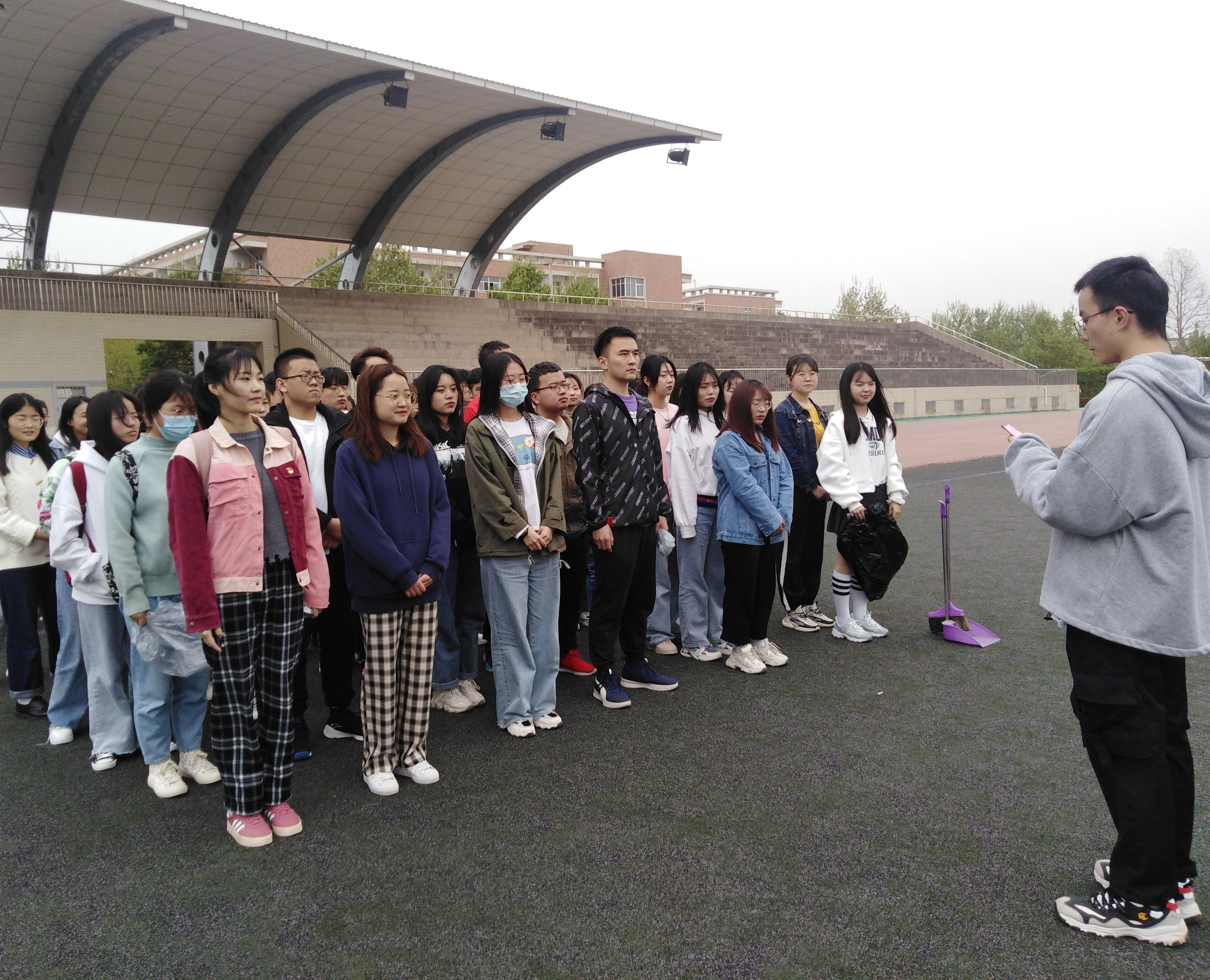虽然天公不作美,但在黎长淼同志的倾心带领下,大家有条不紊,热情高昂,劲头十足,手拿扫帚等清扫工具,将操场内的垃圾、枯枝、树叶进行了彻底的清理。在劳动过程中大家互相合作,互相帮助,很好地展现了自愿奉献、团结协作精神。