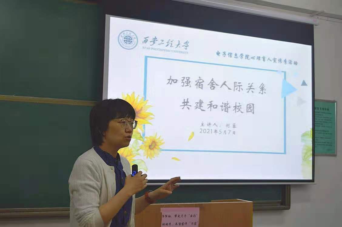 刘蓉从理解:人与人相处有何规律、沟通:有问题要怎么说出口、活动:友情仅仅说是不够的、依恋:我们要怎样相处一起、适应:在一起学会相互适应等五个方面为员工展开讲述。她从现实中的事例入手,分析导致宿舍关系问题产生的原因和不良后果,嘱咐同学们务必要处理好宿舍人际关系。她着重强调了要形成良好的宿舍关系,要从小的细节入手,从积极反馈着手,舍友彼此之间相互改变,相互适应,多沟通,共成长。