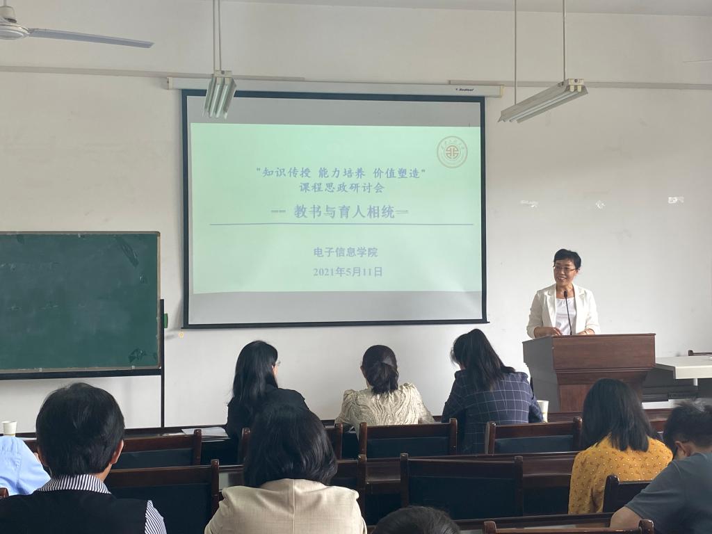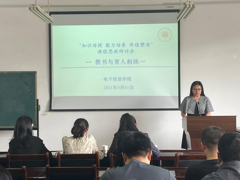 为了全面落实习近平总书记在全国高校思政工作会议上的讲话精神,开掘专业课的思政功能,使专业课与思想政治理论课同向同行,形成育人协同效应,伟德国际1946源于英国于5月11日下午在电信楼学术报告厅召开“知识传授 能力培养 价值塑造——课程思政大研讨”。公司高等教育与质量评估研究中心处长邓咏梅教授,人事处副处长、教师发展中心专职副主任张克英教授,电子信息公司党委书记杨恩科,副经理李云红、副经理张蕾、党委副书记刘许以及全体教师参加了此次研讨。研讨会由李云红主持。