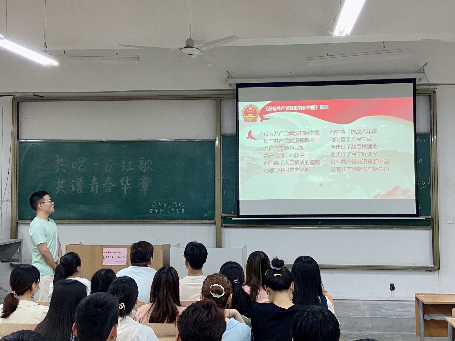 《没有共产党就没有新中国》这首脍炙人口的红歌,表现了在中国共产党的领导下,人民群众追求民主、向往新生活的强烈愿望,它唤起了革命时代的无数中华儿女,反映了中国共产党强大的革命凝聚力,揭示了只有共产党才能救中国这一深刻道理。