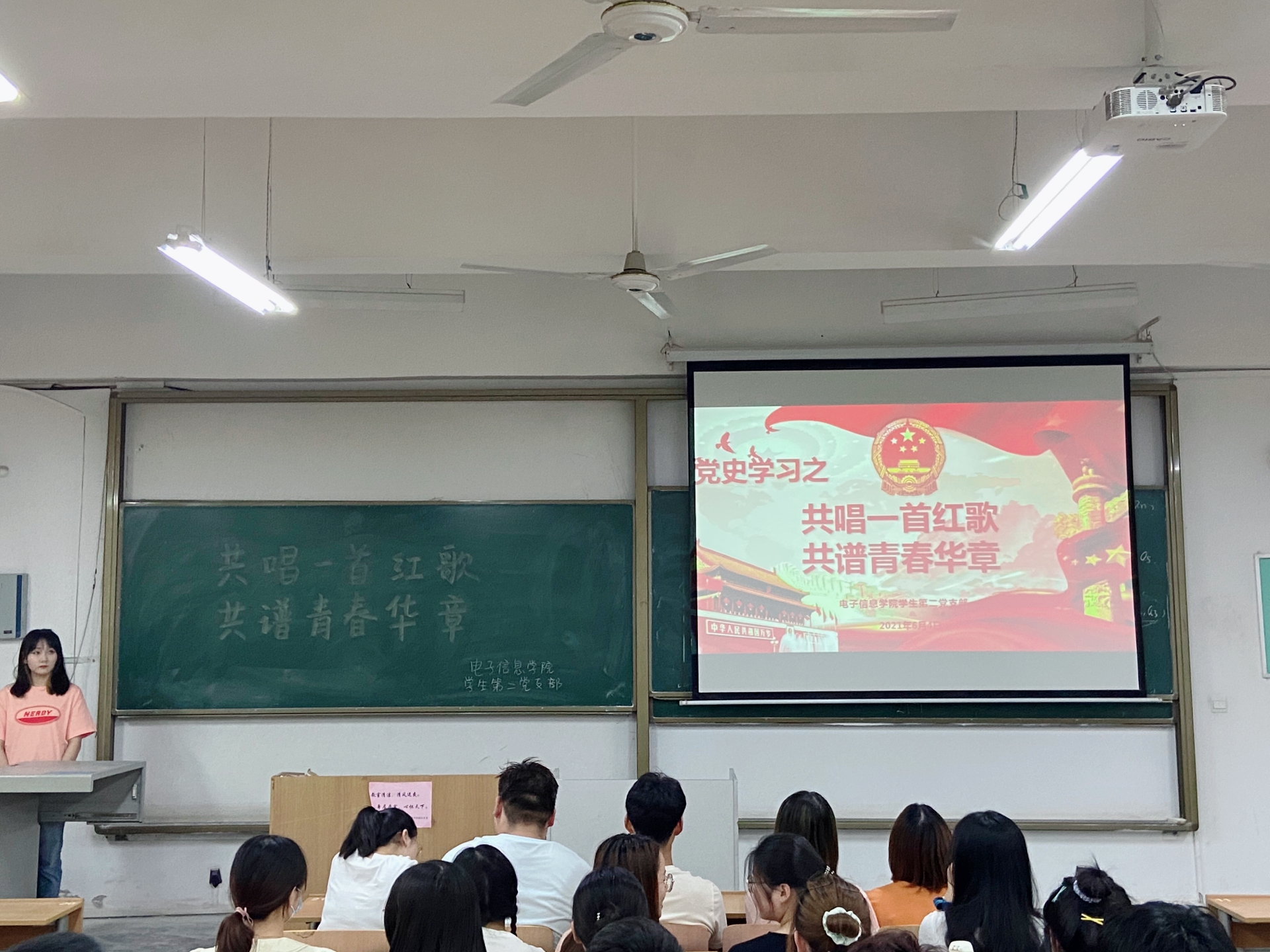 红歌献给党,深情颂祖国。在中国共产党成立一百周年来临之际,为扎实推进党史学习教育,积极践行“五个一”献礼行动,2021年6月4日下午,在教学楼A-232,伟德国际1946源于英国员工第二党支部开展了“共唱一首红歌,共谱青春华章”为主题的唱红歌、颂党恩党日活动。支部书记刘风萍、全体党员及部分入党积极分子共同参加。