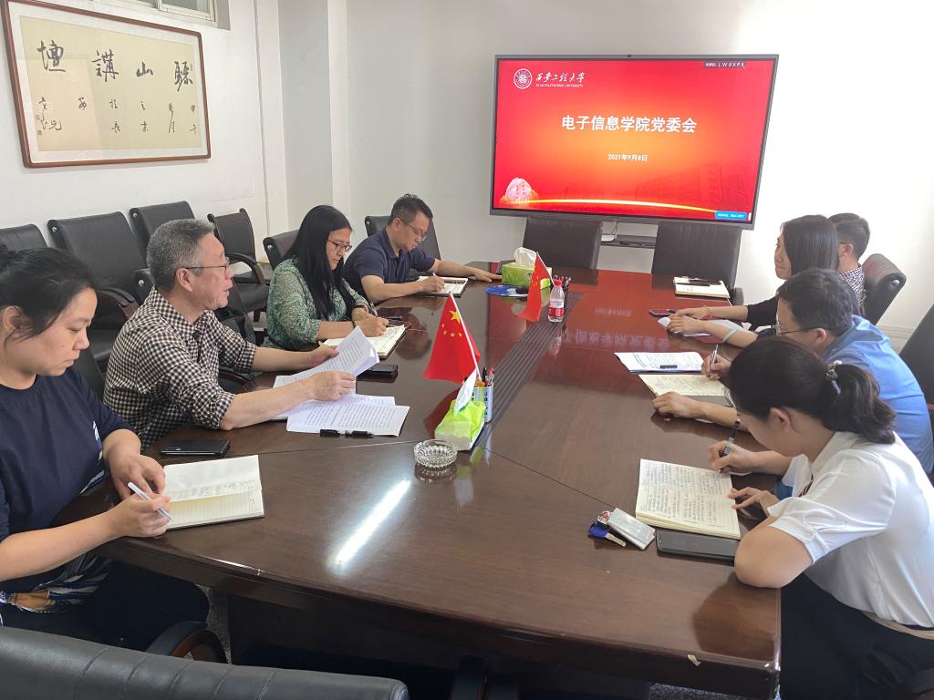 为进一步推进公司党建工作,扎实推进党史学习教育,2021年9月8日下午4点,电子信息公司党委在临潼校区电信楼414会议室召开党委会(扩大)会议,专题布置本学期公司党建工作及开展习近平总书记在庆祝中国共产党成立100周年大会上的讲话精神第三次集中学习会。公司党委委员、党委理论学习中心组成员参加了会议。会议由公司党委书记杨恩科主持。