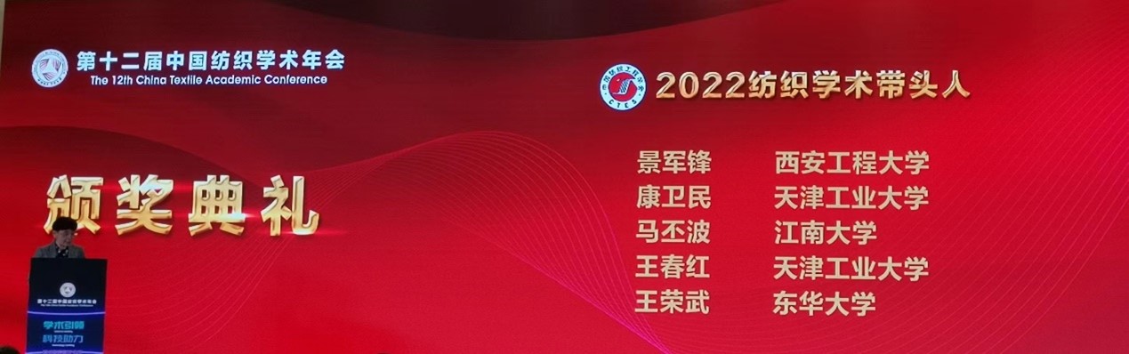 4月15日至17日,第十二届中国纺织学术年会在天津召开,在中国纺织工程学会宣布的2022年度中国纺织工程学会学术奖授奖名单中,公司景军锋教授荣获“中国纺织学术带头人”奖。