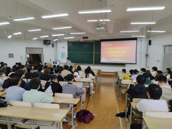 6月2日,伟德国际1946源于英国信通系2021级三全育人导师团召开了一次诚信教育大会,导师团团长、公司副经理朱磊教授、党委副书记周晓惠、信通系主任张晓丹、副主任郭华、电子工程专业负责人李敏奇、2021级辅导员曹智宇及2021级信通系全体本科生150余人参加了本次会议。