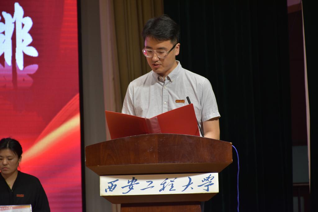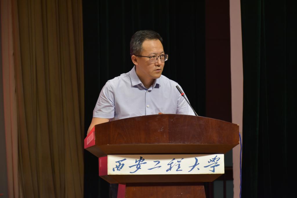 大会第四项,教师代表李珣教授发言。他代表全体教师向新生表示热烈的欢迎,并鼓励同学们做到“仁、义、礼、智、信”,努力成为专业素质过硬、品质优良的优秀老员工。