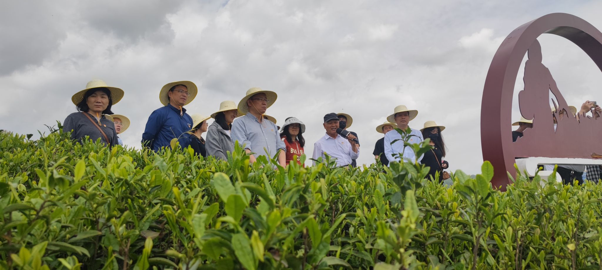 19日下午,大家首先来到位于老县镇蒋家坪村的女娲凤凰茶业现代示范园区。清晨的春雨过后,午后的茶山上阳光明媚、绿意盎然,蒋家坪村原支部书记罗显平带领大家领略茶山风光,并详细介绍了习近平总书记考察时的情况。2020年4月21日,习近平总书记在陕西考察时,曾来到安康市平利县老县镇,先后走进锦屏社区、锦屏社区工厂、老县镇中心卫生院、老县镇中心小学、蒋家坪村凤凰茶山,亲切慰问易地搬迁群众,详细询问生活、收入、就医、教育、产业等情况。就在凤凰茶山,他边走边察看茶树的长势并在与茶农的交谈中指出:人不负青山,青山定不负人。绿水青山既是自然财富,又是经济财富。希望乡亲们坚定不移走生态优先、绿色发展之路,因茶致富、因茶兴业,脱贫奔小康。作为习近平总书记当时考察茶山时的见证人,罗显平老书记满怀激情地讲述了总书记在茶山上考察的细节,总书记的一言一行给乡亲们留下了深刻的印象,通过罗显平老书记的讲解,老师们也真切感受到习近平总书记心系人民,情系人民,全心全意为人民的博大情怀和使命担当。