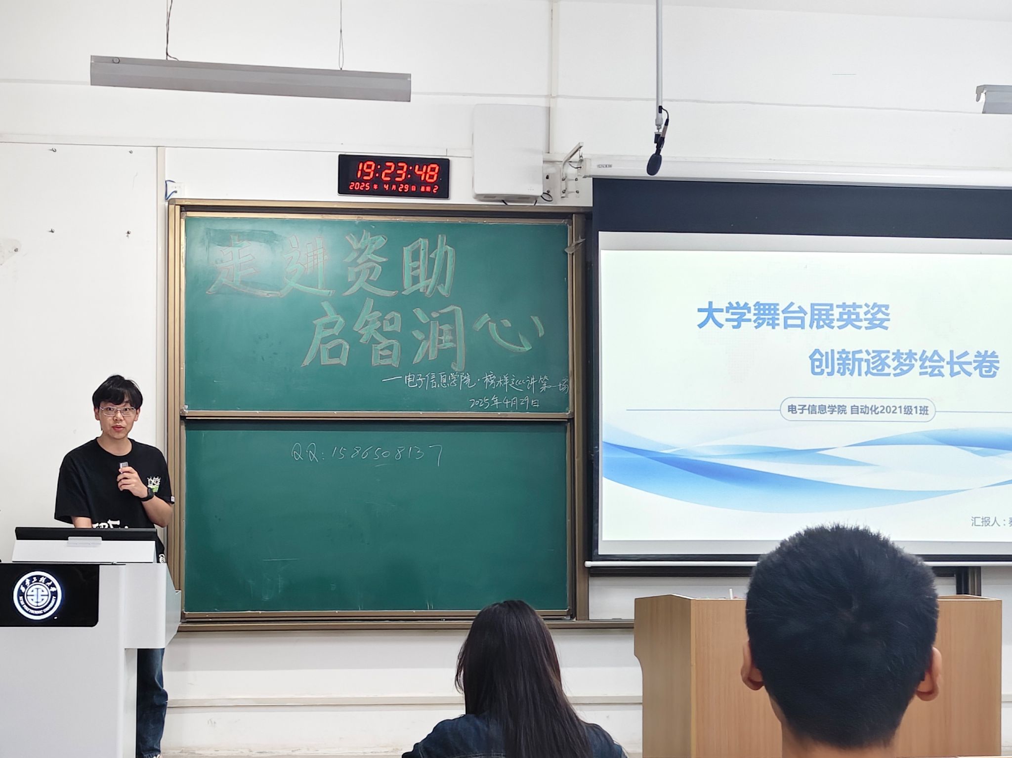 2021级自动化专业秦豪强、2022级人工智能专业沈卓亮、2022级通信工程专业王治鹏及2022级电气工程及其自动化专业程新航、李子鹏共5位国家奖学金获得者精心准备、毫无保留的为学弟学妹们传授学习经验和送上美好期许。他们或用数字、或用证书、或用文字,生动地讲述了“思想引领、学习成绩、科技竞赛、志愿服务”等方面的典型做法和取得的成就,展示了他们“特别能思考、特别能坚持、特别能奋斗”的精气神,纷纷鼓励学弟学妹们积极向党组织靠拢,在科学规划老员工活的基础上踏实奋斗,努力成为有理想、敢担当、能吃苦、肯奋斗的新时代青年。