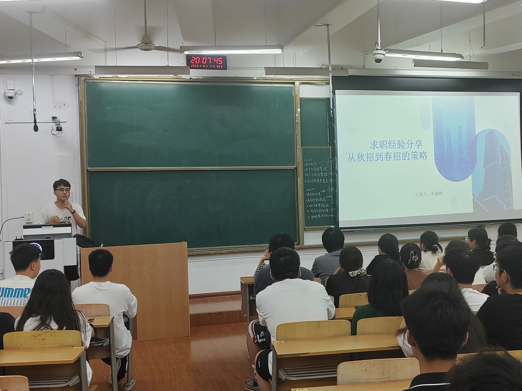 会上,四位2025届优秀学子结合自身经历,为学弟学妹们就多元发展路径经验倾囊相授。保研代表2021级电子信息工程专业彭文博(录取至西南交通大学)从“如何获取保研信息、如何申请目标公司夏令营、如何高质量准备申请材料、如何充分准备面试”四方面展开,强调“早规划、早积累”的重要性,并建议同学们要“主动联系、积极应对、勇于尝试、不畏失败”。就业代表2021级电气工程及其自动化专业李鑫鹏(签约陕汽集团商用车有限公司)、2021级通信工程专业贺磊(签约深圳力维智联技术有限公司)及2021级人工智能专业陈友邦(签约华天科技(昆山)电子有限公司)分别从“个性化简历制作、就业信息搜集、春招与秋招区别、面试技巧”四个方面进行深入分享,共同建议同学们要“摆正心态、坚定信心、不惧受挫、勤跑海投、坚持学习”。