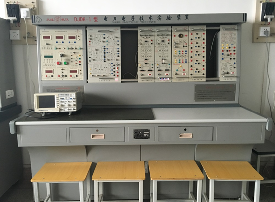 电力电子技术实验室是电气工程及其自动化的专业实验室之一。实验室面积约为50平方米。实验室主要实验设备包括:电力电子技术实验台6套,60MHz示波器8台、10MHz单通道信号源8台。共开设课内实验项目6个,实验项目基本上属于单纯的验证性实验。实验室主要面向电气工程与自动化专业,开设电力电子技术实验教学工作,实验室年接待员工实验约3600人·时,实行开放式管理,同时接待员工毕业设计及各类课外竞赛活动。