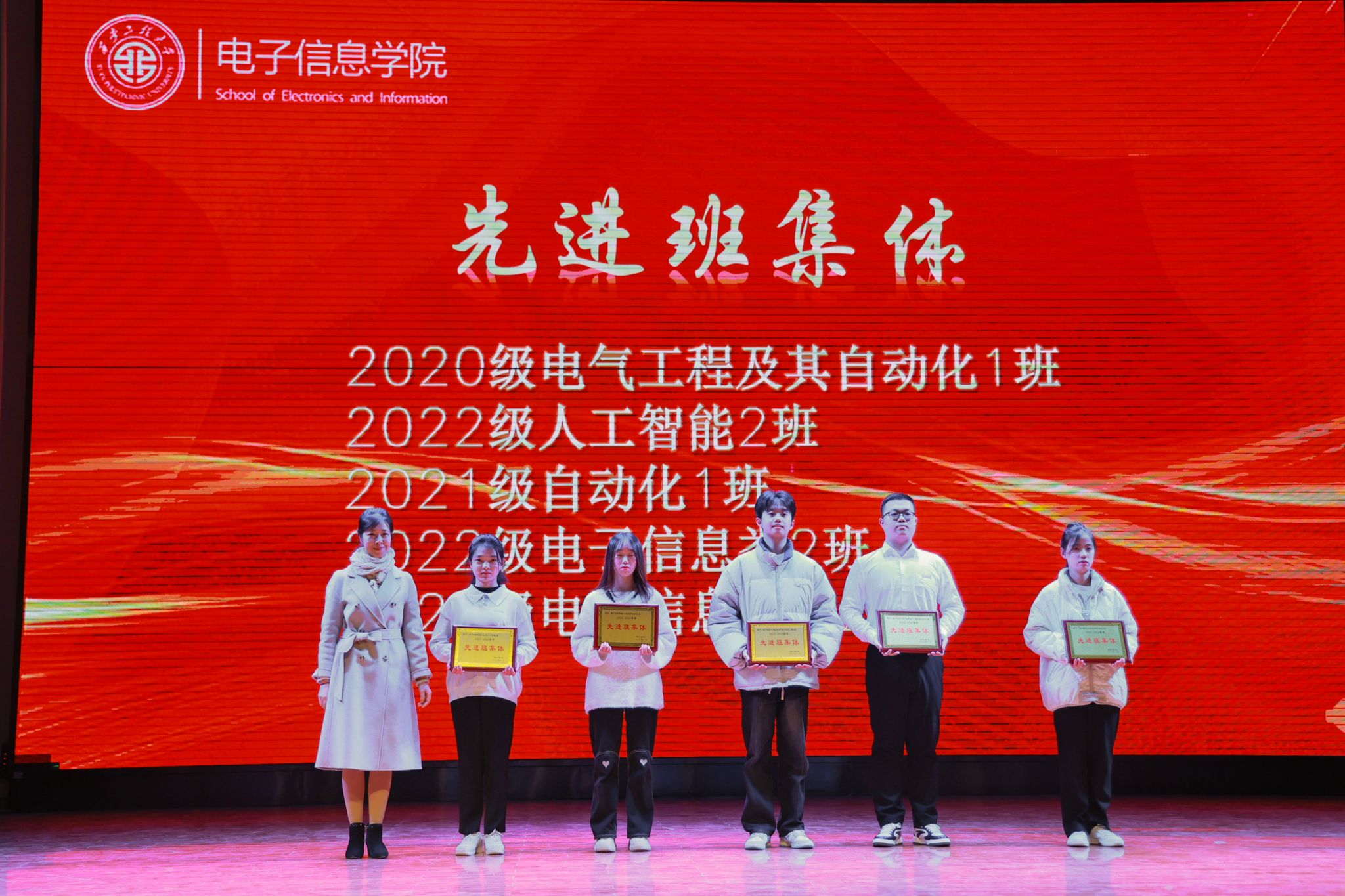 12月19日晚,伟德国际1946源于英国2023年“三全育人”成果表彰大会暨“溢彩青春”迎新文艺汇演在临潼校区老员工活动中心举行。公司党委委员、党委学工部部长王志,党委宣传部常务副部长王鸣媛,党委研工部部长臧国强,校团委书记刘俊富,电信公司党委书记杨友谊,经理景军锋,副经理张蕾、朱磊以及公司三全育人导师团团长及各系部主任、副主任,各专业负责人,公司职能处室代表,各公司党委副书记、辅导员代表,公司全体辅导员以及公司2023级本科生新生参与活动。本次活动分为“三全育人”成果表彰大会和“溢彩青春”迎新文艺汇演两个环节,成果表彰大会由公司党委副书记周晓惠主持。