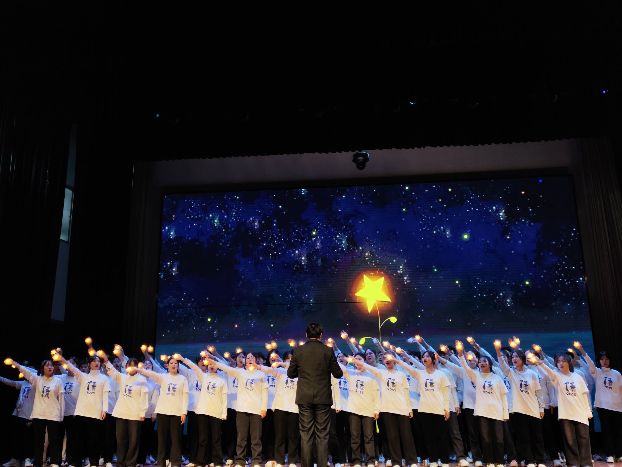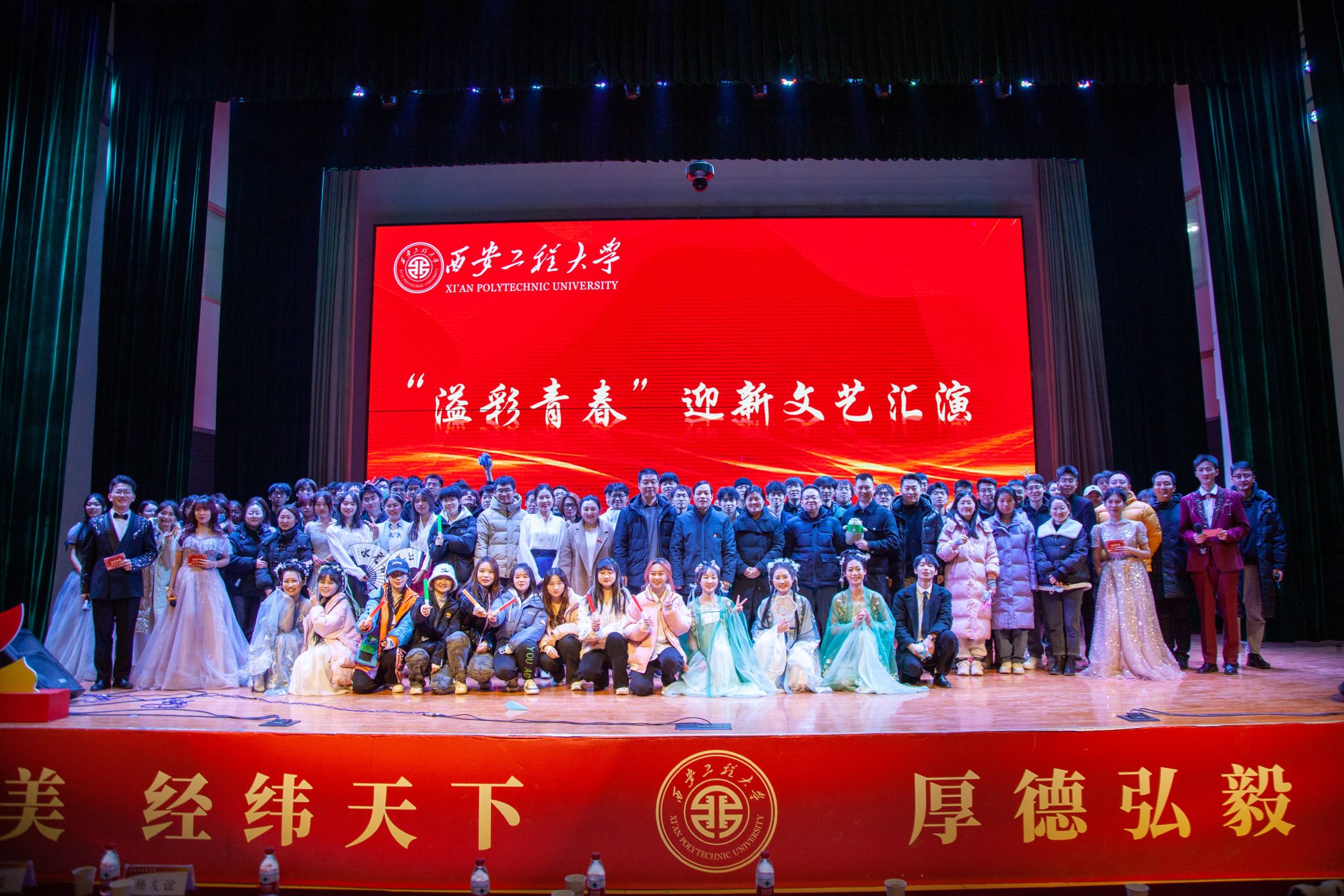 “溢彩青春”迎新文艺汇演以“风华正茂,青年起航”为主题共有四个篇章12个节目。同学们以歌舞、京剧、情景剧、乐器演奏等异彩纷呈的形式展现了电信学子的青春活力。由公司青年志愿者演绎的舞台剧《志愿日记》讲述了十四运、疫情防控、实践支教中的动人故事,展现了公司学子强烈的的社会责任与无私的奉献精神;2023级辅导员吴桐、赵卓玥领衔的民族服装走秀节目《盛世国风,华裳九州》展现了青年一代对于传统文化自信及民族文化传承的理解和担当。