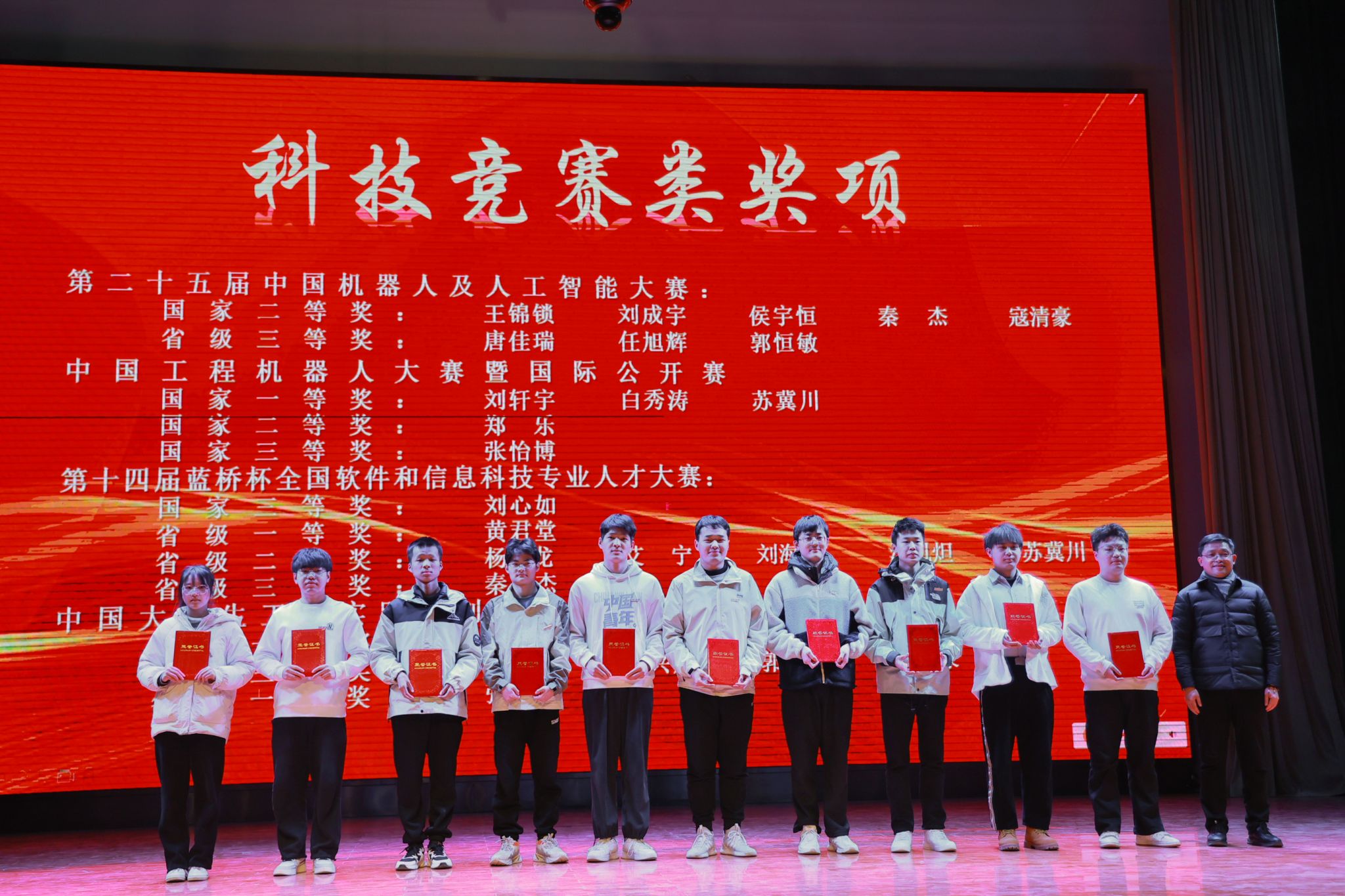 公司党委书记杨友谊宣读表彰决定。在表彰环节中,公司对获得国家奖学金、国家励志奖学金、桑麻奖学金、优秀员工标兵、优秀员工、优秀员工干部的任清清、李兰兰等145位同学,获得先进班集体的2020级电气工程及其自动化1班等5个班级,以及在各类科创竞赛中获得国家级、省级荣誉的白秀涛、杜佳晟等45位同学进行了表彰。希望电信学子以受表彰的同学为典范,在大学的学习中严于律己,力争上游,成就更好的自我。
