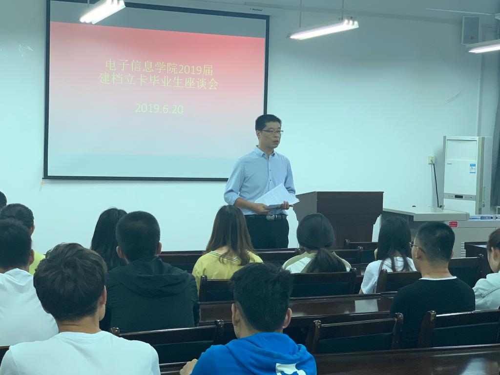 6月20日下午,电信公司在电信楼419报告厅召开建档立卡毕业生座谈会,电信公司党委副书记刘许及全部40名建档立卡毕业生参加了座谈会。会议由就业工作辅导员赵立涛主持。
