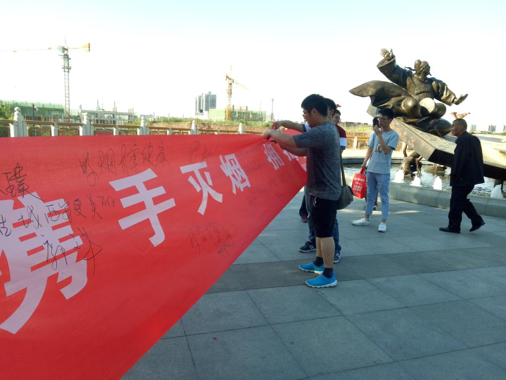 同志们自由分成5组,纷纷向路过的群众介绍了烟草的危害、戒烟的方法,并向行人递出了自己亲手制作的烟灰缸并送上一枚口香糖,邀请他们在宣传横幅上签字送祝福,积极引导和鼓励广大群众积极参与控烟活动,为创建良好的生活环境做出贡献。活动后,同志们纷纷表示作为党员,必须要率先垂范,为营建无烟清新的学习生活环境奉献自己的力量。