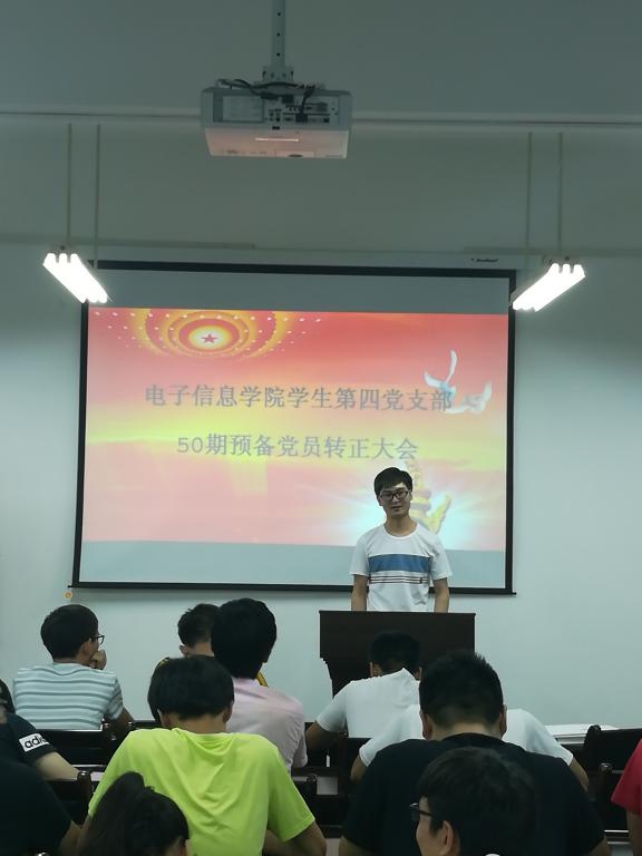 大会第一项,接收52期预备党员。大会首先由梅钰仑发表讲话,指出了在党支部规模不断壮大的同时应更加注重保持党员的先进性,端正入党动机,时刻严格要求自己。紧接着,9名发展对象依次上台讲述了自己的入党动机、入党历程和对党的理解和认识。之后,各个入党介绍人发表了对发展对象的意见。在最终的投票表决阶段,各发展对象都顺利通过了现场正式党员半数以上的投票,同意其成为预备党员。