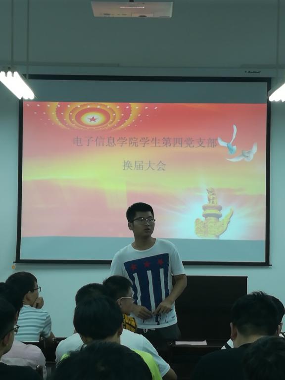 大会第三项,支部换届。首先,梅钰仑同志就支部当前的具体情况做以介绍。并表示,作为一名员工党员,我们要脚踏实地,积极认真做实事,时刻谨记为人民服务的宗旨。经过在座所有党员和预备党员现场投票,最终,选举出了余学文同志成为新一届党支部副书记,丁秦豆同志成为宣传委员,林玉龙同志成为组织委员。随后,党小组组长余学文同志代表发言,表示新一届党小组会严于律己,认真努力工作,始终把全心全意为同学服务的宗旨放在首位,带领支部取得更好的发展。随后,梅钰仑同志对新一任支委提出了新的希望,表示一定要注重支部提升支部凝聚力,调动起支部内部党员、预备党员、积极分子的积极性,严谨对待并做好支部工作。