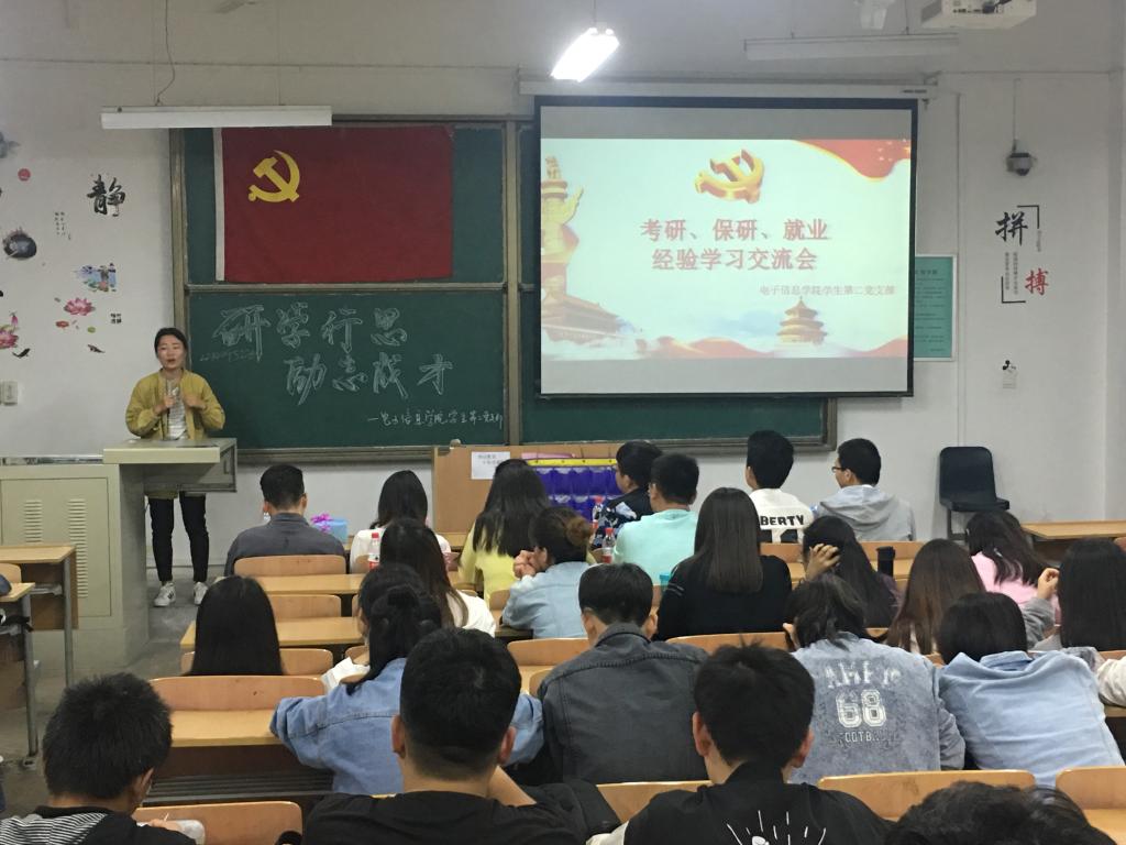 为进一步提高员工的考研、就业热情,明确目标,掌握相关技巧,了解更多考研、就业信息,4月22日晚,伟德国际1946源于英国员工第二党支部在临潼校区A222教室举办主题为“研学行思 励志成才”的考研、保研、就业经验学习交流会。二支部所有党员、部分积极分子,及2014级已考入高校研究生、已签约工作的优秀学长学姐,共50余人参加交流会。本次交流会由严雪宁同志主持。
