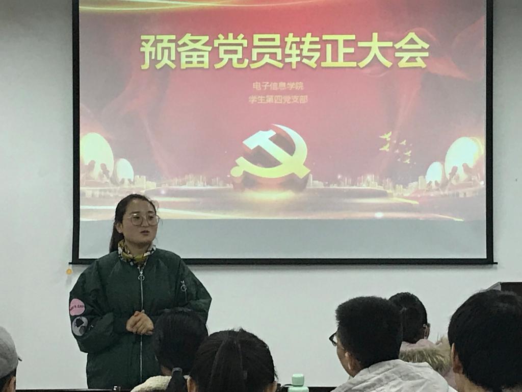 会议开始,首先由王毛同志安排相关事宜。接着,由第55期的9名发展对象对于他们自己,包括入党动机,家庭政治面貌,个人履历等方面进行了介绍,并且分别向大会汇报了他们的学习,生活等情况,也表示他们将始终追随党组织的步伐,听从党的安排。在这之后,他们认真回答了正式党员所提出的问题,各自入党介绍人也对发展对象的情况进行了相应说明,都表示各发展对象入党动机端正,思想行为上始终向着党组织学习,不断向党组织靠拢,具备成为预备党员要求。最终,李耀武等9名发展对象全票通过,正式被接收为预备党员。此后,根据中国共产党党员发展流程,第53期预备党员在为期一年的预备期考察后,向支部按时递交了转正申请。经由王毛等9名同志的发言汇报以及通过正式党员的投票表决,王毛等9名同志按期转为正式党员。