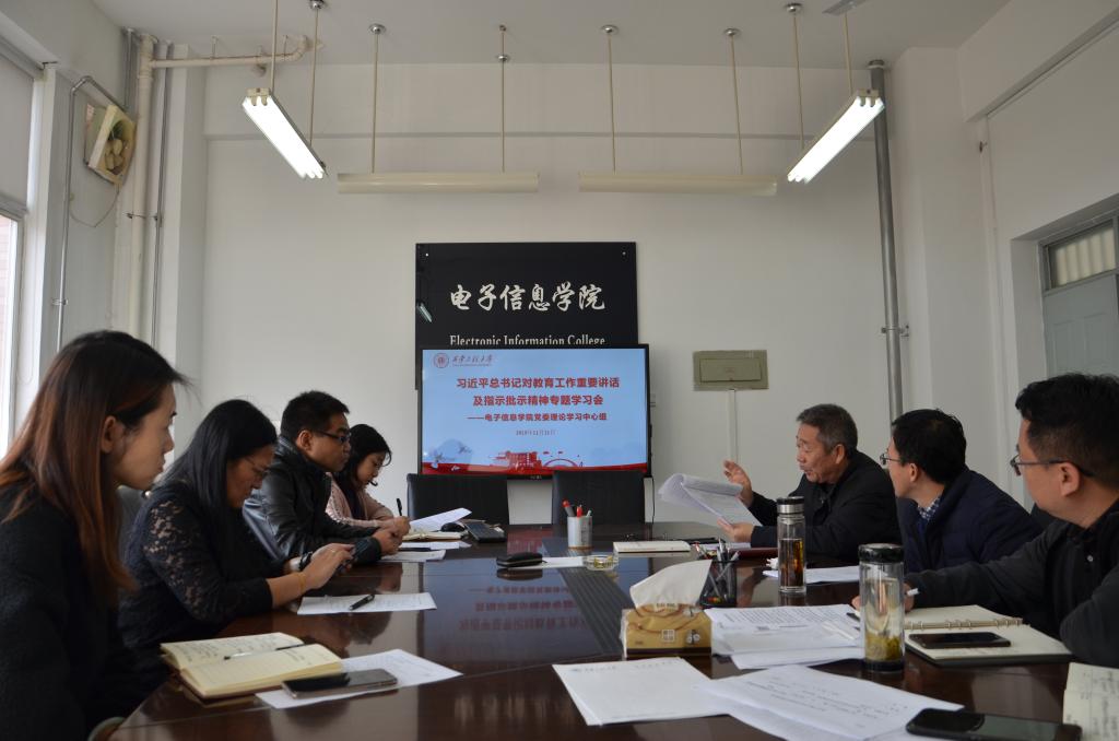 根据陕西省委教育工委下发的《关于对省属高校贯彻落实习近平总书记对教育工作重要讲话及指示批示精神情况开展监督检查的通知》《中共伟德国际1946源于英国委员会关于进一步深入学习贯彻习近平总书记关于教育的重要论述的实施意见》的要求,2019年11月11日下午4点,电子信息公司党委理论中心组召开习近平总书记对教育工作重要讲话及指示批示精神专题学习会,会议由公司党委书记杨恩科同志主持,党委理论中心组全体成员参加。