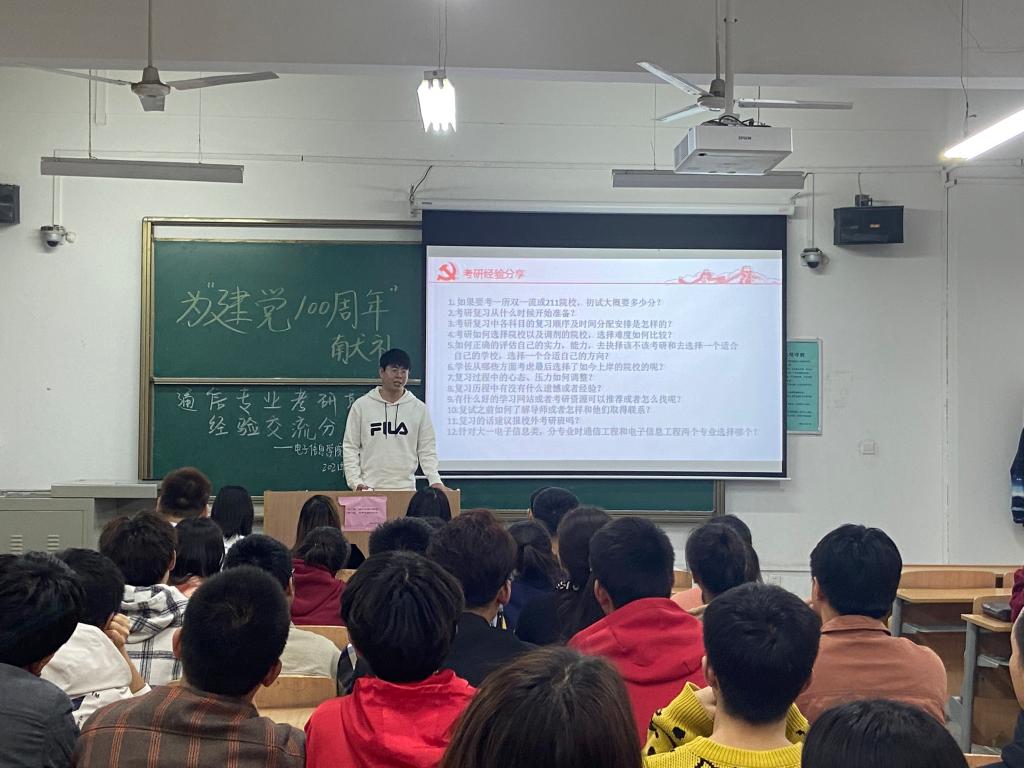 为庆祝建党百年这一历史时刻,为扎实推进党史学习教育,切实落实支部“五个一”献礼行动之做一件好事,近日,在临潼校区A-122,伟德国际1946源于英国员工第二党支部开展了主题为“向优秀取经 庆建党百年”通信专业考研求职交流活动。支部党员、入党积极分子及部分已递交入党申书的共青团员共同参加。