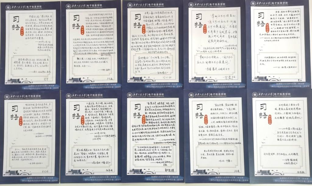 大家选取自己最喜欢的习近平总书记在讲话中曾引用过的诗文精华,例如:“道之所在,虽千万人吾往矣”“欲栗者务时,欲治者因势”“期见乎隐,其显乎微,故君子慎其独也”等,深入学习习近平总书记在亚太经合组织第十三次领导人非正式会议、上海合作组织成员国元首理事会第十九次会议、新进中央委员会委员等领导干部学习贯彻党的十九大精神研讨班等重要场合的讲话全文,查阅该处引文的出处和引文背后的蕴含的中华优秀传统文化,以习近平总书记的讲话原文和引文出处为元素进行书法创作。活动评出了三个级别的奖项。