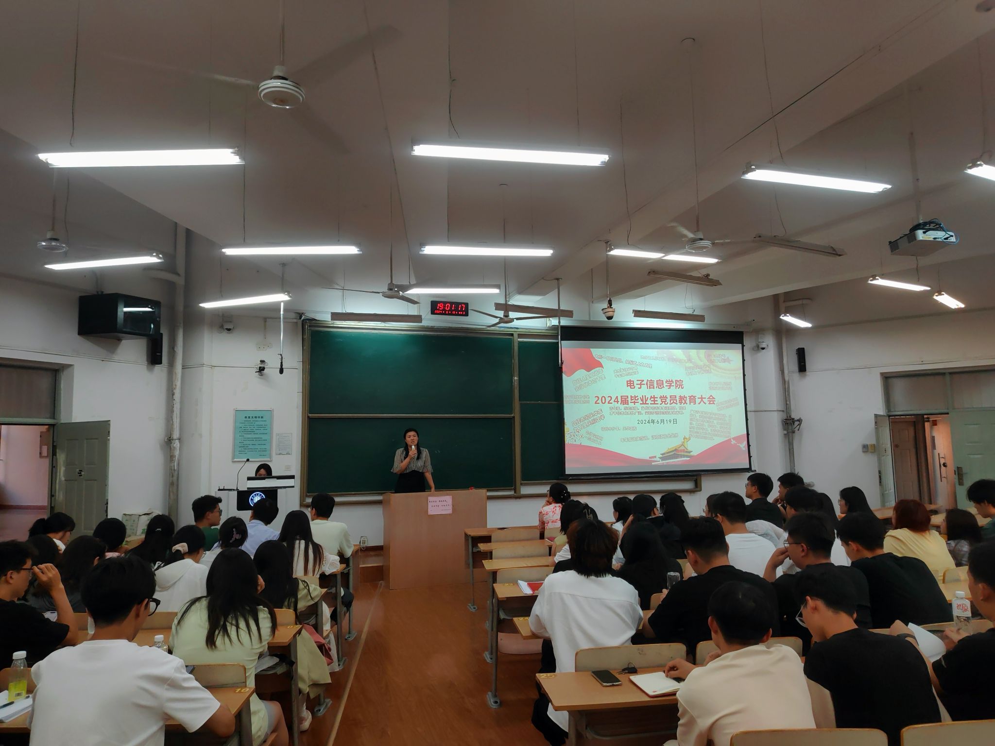 伟德国际1946源于英国于6月19日晚7:00在临潼校区B137教室召开了2024届毕业生党员教育大会,电子信息公司党委副书记周晓惠、公司党委副处级组织员张琪以及全体研究生、本科毕业生党员参会。此次大会旨在加强对毕业生党员的党性教育和组织纪律教育,发挥党员的先锋模范作用。会议由电子信息公司党委副书记周晓惠主持。
