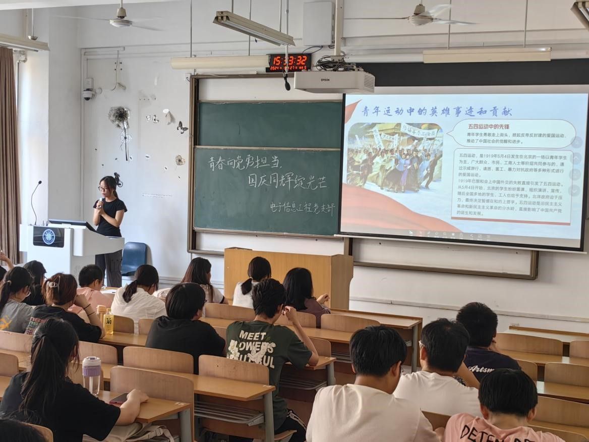 9月27日下午,电子信息工程专业本科生党支部在教学楼D-2106组织开展“青春向党勇担当,国庆同辉绽光芒”主题党日活动。此次会议由支部党小组组长杜佳晟同志主持,支部党员和入党积极分子参加了本次活动。