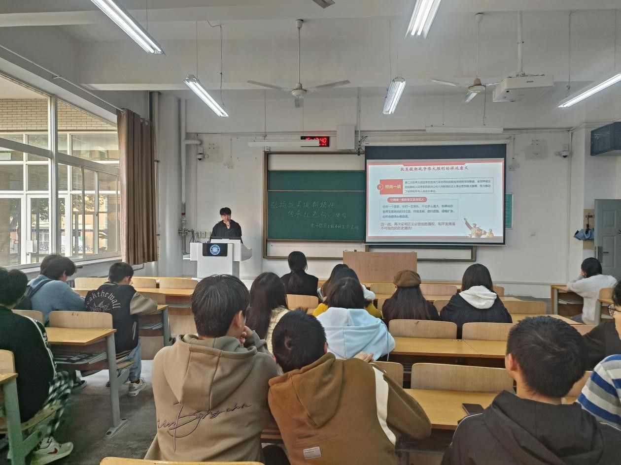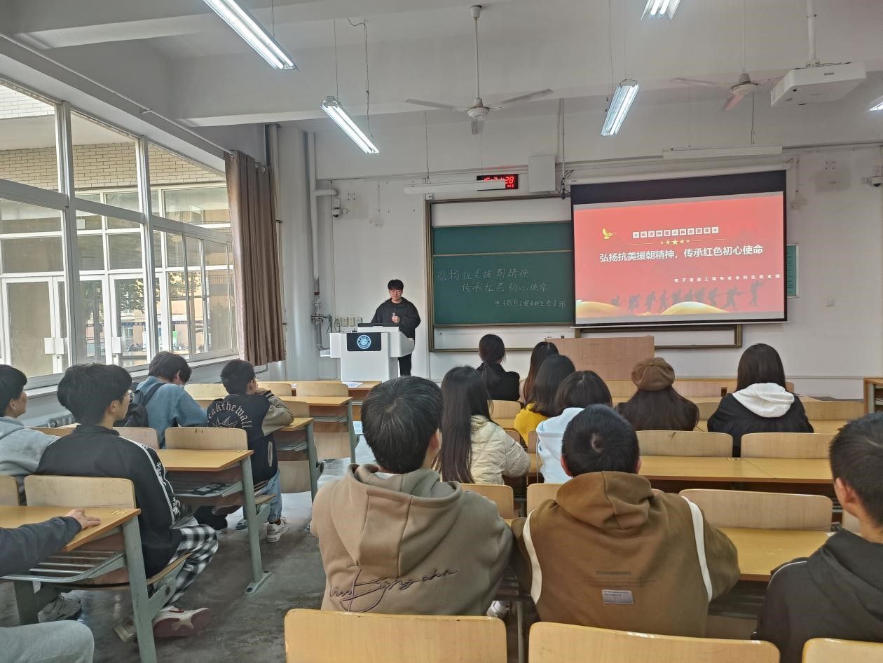 2024年10月25日下午,电子信息工程专业本科生党支部于教学楼A-112组织开展“弘扬抗美援朝精神,传承红色初心使命”主题党日活动。支部党员和入党积极分子参加了本次活动。